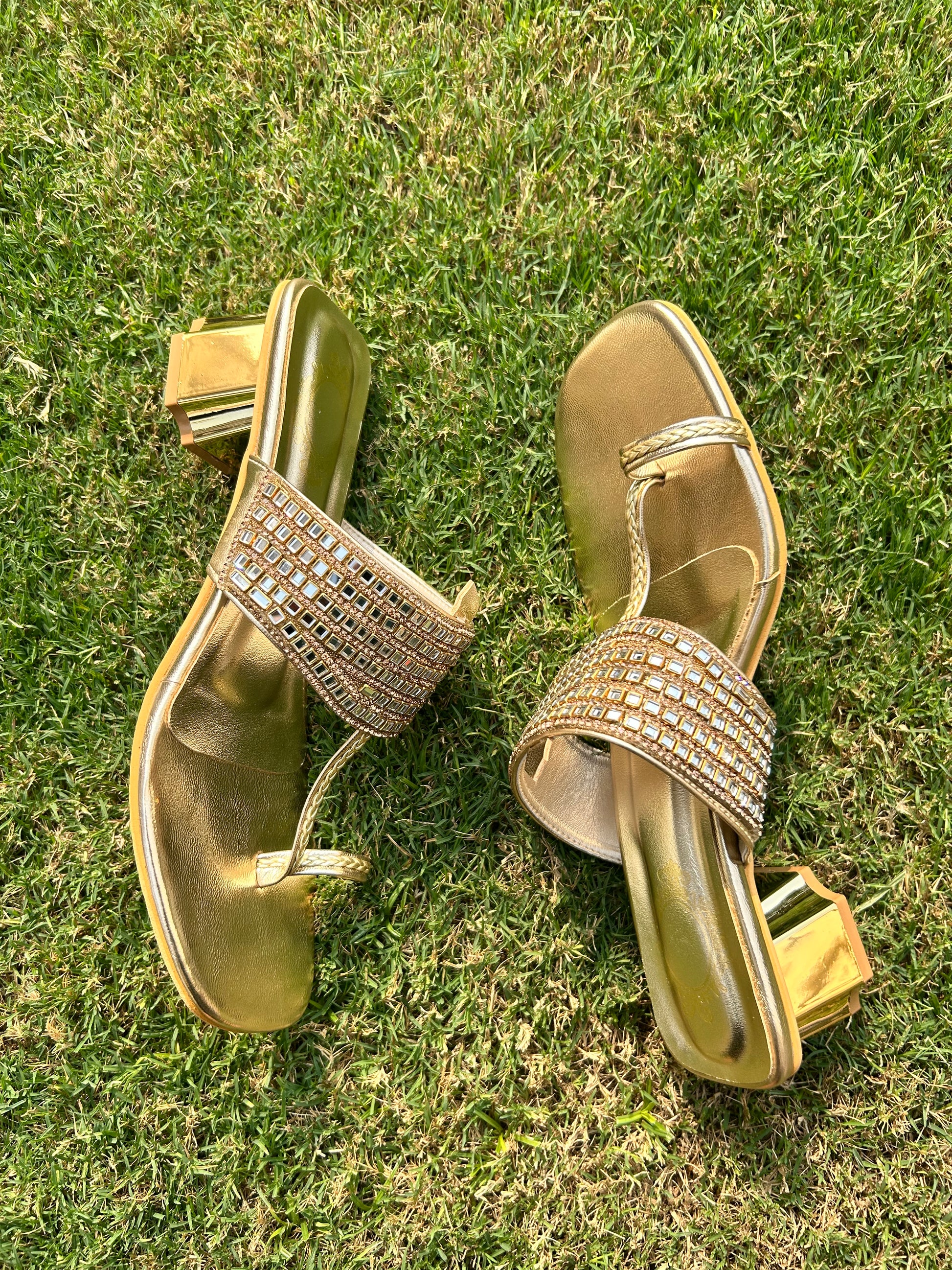 Introducing Chaandni (Heel), the perfect addition to your wardrobe! Handmade with a perfect golden color, these heels are versatile and can elevate any outfit. With a comfortable 1.5 inch heel height, you can wear them all day or for dancing nights without any shoe bites. Trending and suitable for any occasion, Chaandni is a must-have for your collection.