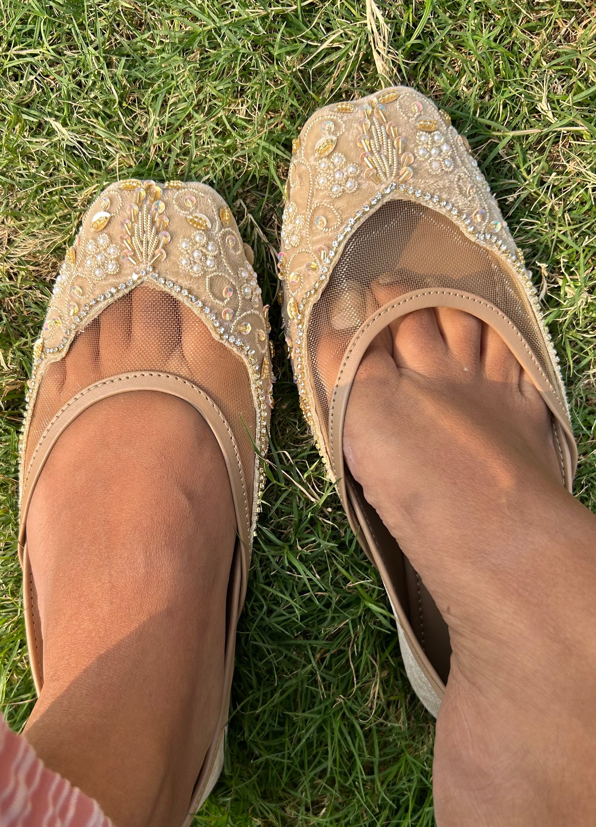 Experience luxury and comfort with our Maharani Jutti. Perfect for wide feet girls, this jutti is handcrafted with intricate embroidery on a soft velvet base. Say goodbye to shoe bites and elevate your style this wedding season.