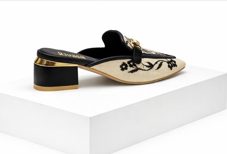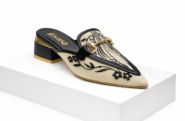 Step into effortless elegance with Rivasa’s embroidered back-open mules. Crafted in premium, luxury-feel material, this pair features a 1-inch heel that offers comfortable lift for all-day wear.